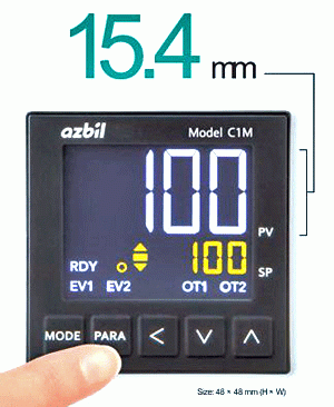 The large 15.4-mm display (about 1.4 times larger than the previous model) shows the process value (PV) in bright white.