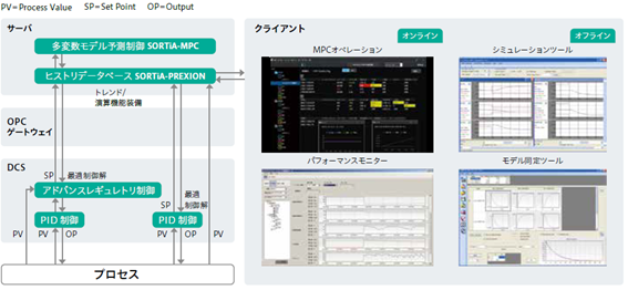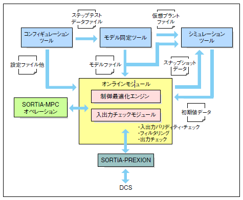 SORTiA-MPCは、オフライン設計ツール、オンラインモジュール、標準運転操作画面から構成されます。