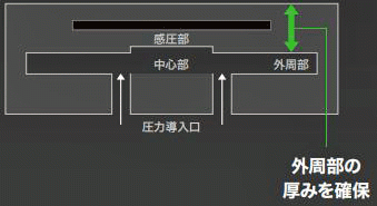 感圧部が変形しにくくなりゼロ点シフトを低減